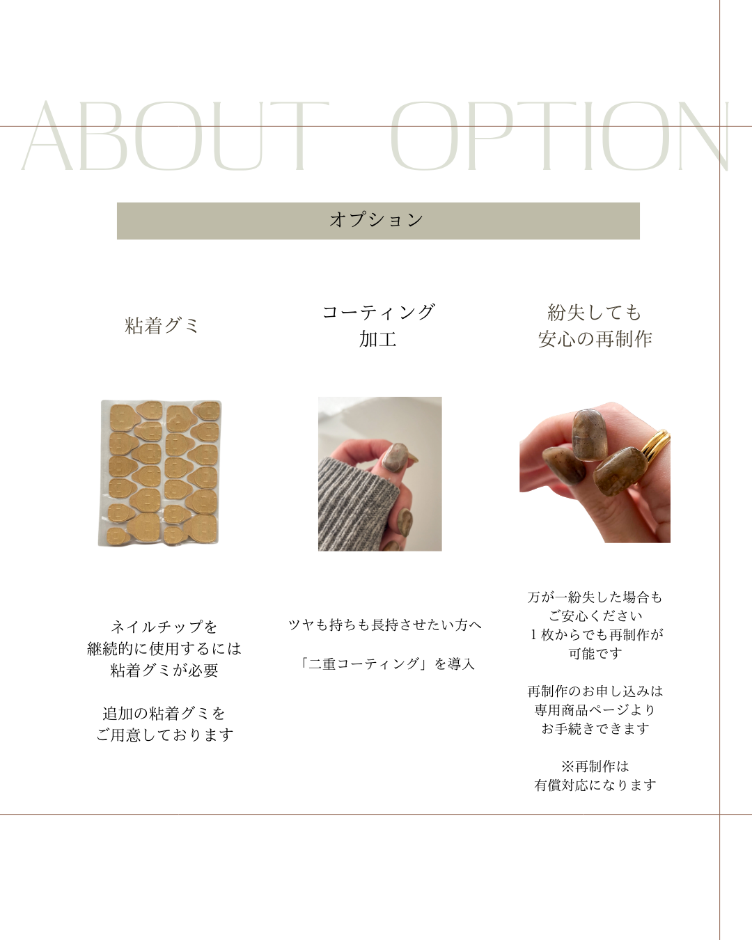 ⚫︎ サイズ:お客さまのお爪に合わせて製作(マイページにサイズ、親指ストレート加工の有無、フラット加工の有無の記載をお願いいたします)